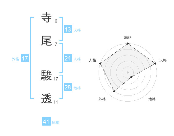 寺尾 駿透さんを姓名の画数から五運を鑑定
