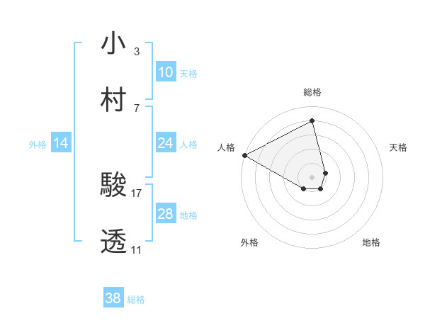小村 駿透さんの総格は38画の4点!