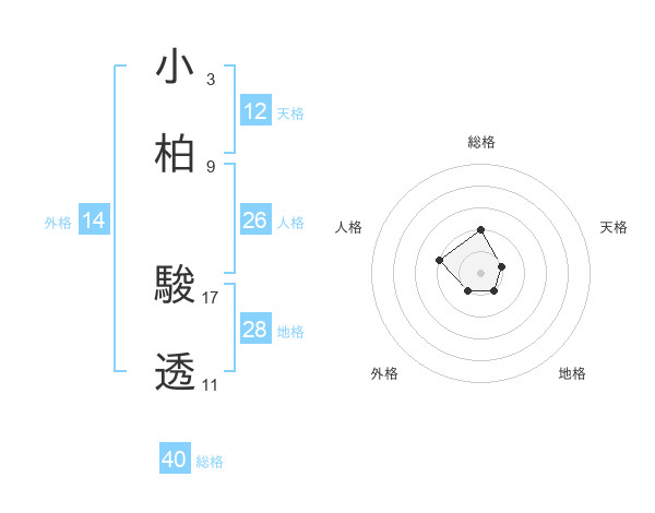小柏 駿透さんを姓名の画数から五運を鑑定