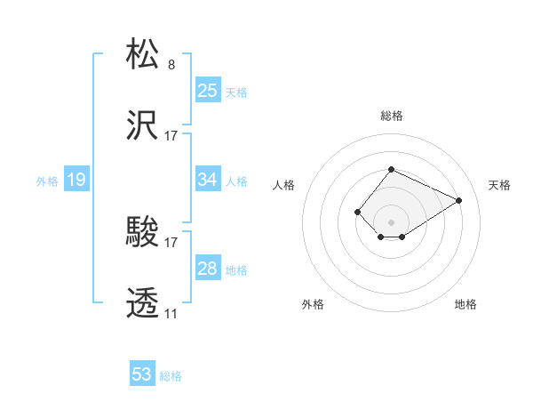 松沢 駿透さんの天格は25画の4点!