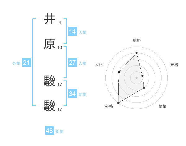 井原 駿駿さんの総格は48画の4点!