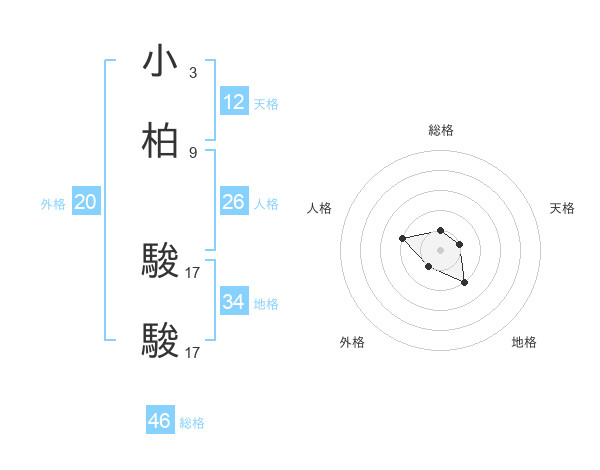 小柏 駿駿さんを姓名の画数から五運を鑑定