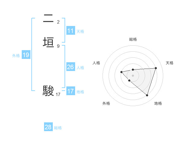 二垣 駿さんの地格は17画の4点!