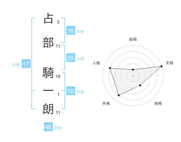 占部 騎一朗さんを姓名の画数から五運を鑑定