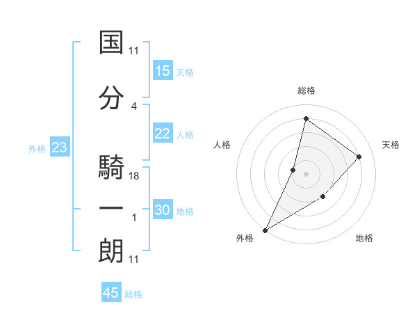 国分 騎一朗さんを姓名の画数から五運を鑑定