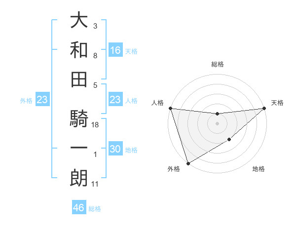 大和田 騎一朗さんを姓名の画数から五運を鑑定