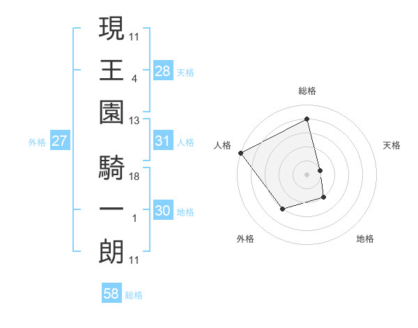 現王園 騎一朗さんを姓名の画数から五運を鑑定
