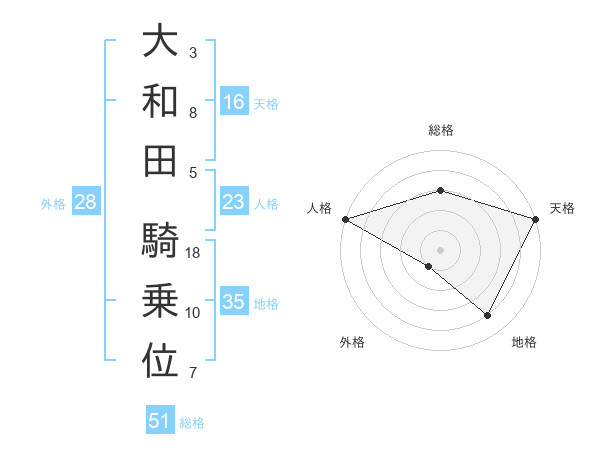 大和田 騎乗位さんを姓名の画数から五運を鑑定