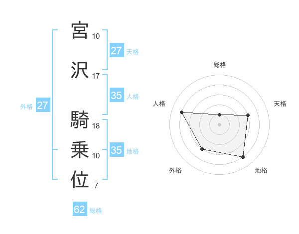 宮沢 騎乗位さんを姓名の画数から五運を鑑定