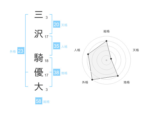 三沢 騎優大さんの外格は23画の5点!