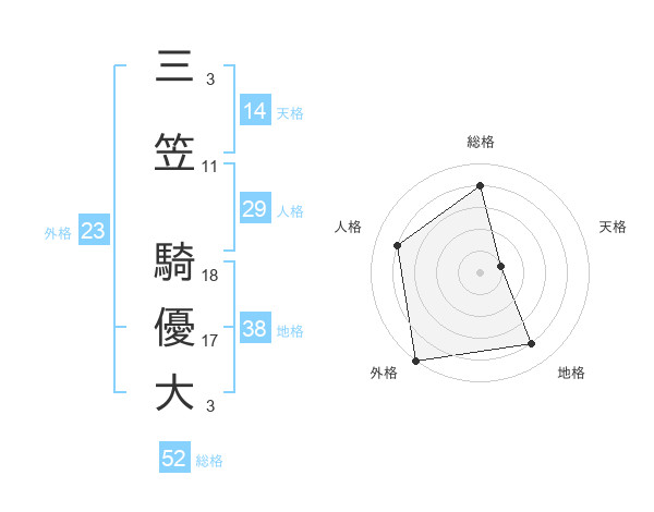 三笠 騎優大さんを姓名の画数から五運を鑑定