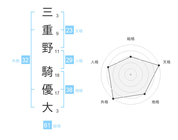 三重野 騎優大さんを姓名の画数から五運を鑑定