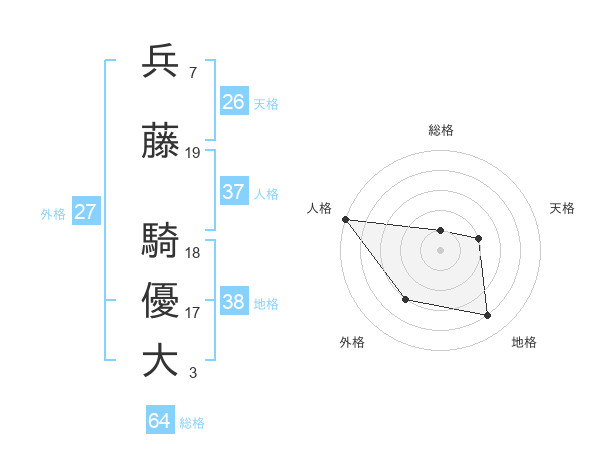 兵藤 騎優大さんを姓名の画数から五運を鑑定