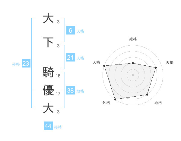 大下 騎優大さんを姓名の画数から五運を鑑定