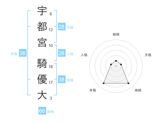 宇都宮 騎優大さんの外格は38画の4点!