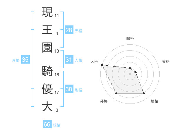 現王園 騎優大さんの総格は66画の1点!