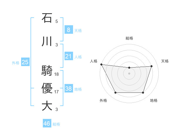 石川 騎優大さんの地格は38画の4点