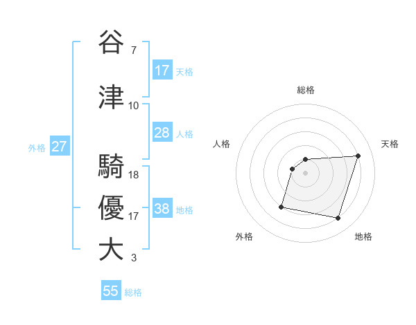 谷津 騎優大さんを姓名の画数から五運を鑑定