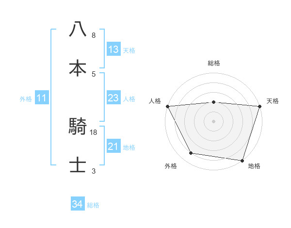 八本 騎士さんの天格は13画の5点!