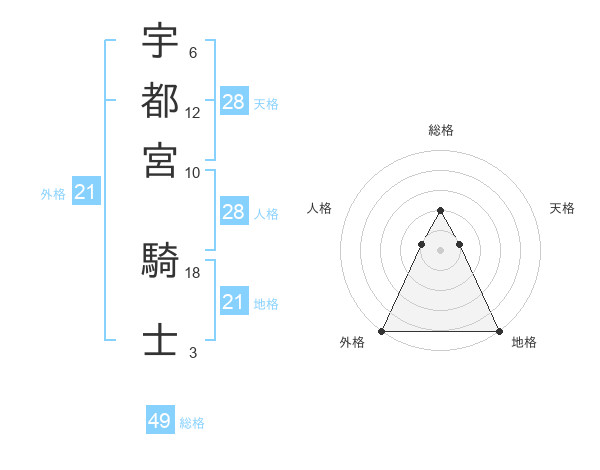 宇都宮 騎士さんを姓名の画数から五運を鑑定
