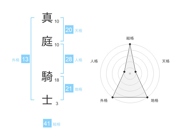 真庭 騎士さんを姓名の画数から五運を鑑定