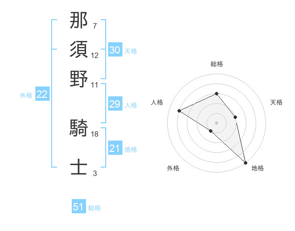 那須野 騎士さんを姓名の画数から五運を鑑定