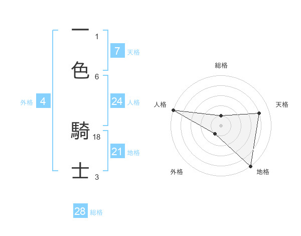 一色 騎士さんの天格は7画の4点!