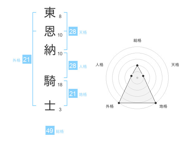東恩納 騎士さんの総格は49画の2点!