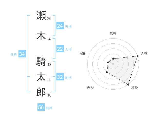 瀬木 騎太郎さんの天格は24画の5点!