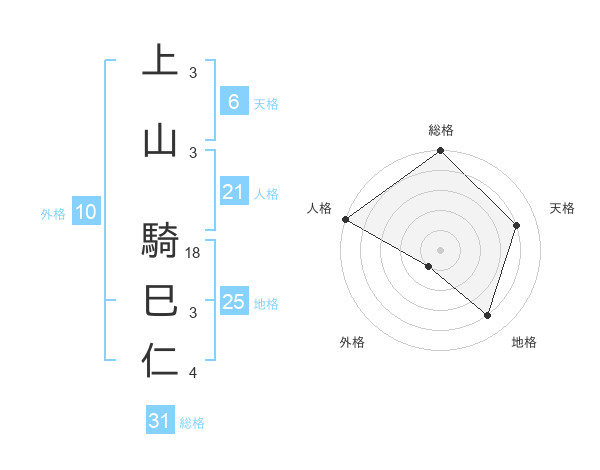 上山 騎巳仁さんを姓名の画数から五運を鑑定