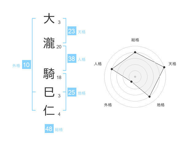 大瀧 騎巳仁さんを姓名の画数から五運を鑑定