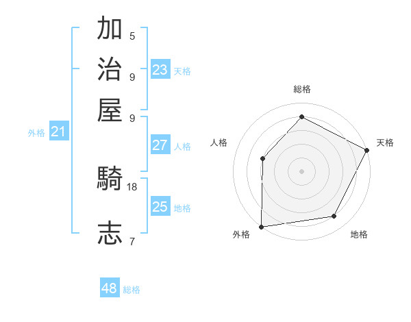 加治屋 騎志さんの外格は21画の5点!