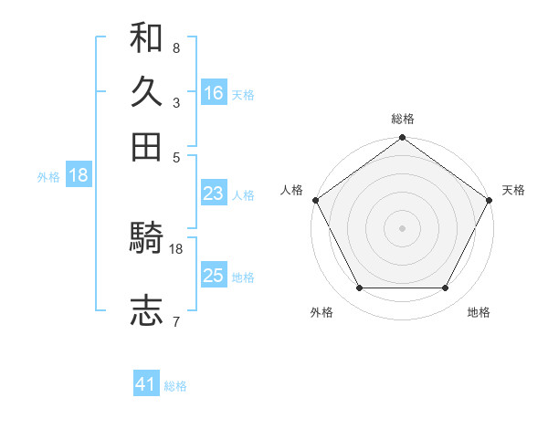 和久田 騎志さんを姓名の画数から五運を鑑定
