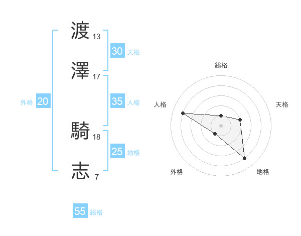 渡澤 騎志さんの総格は55画の1点!