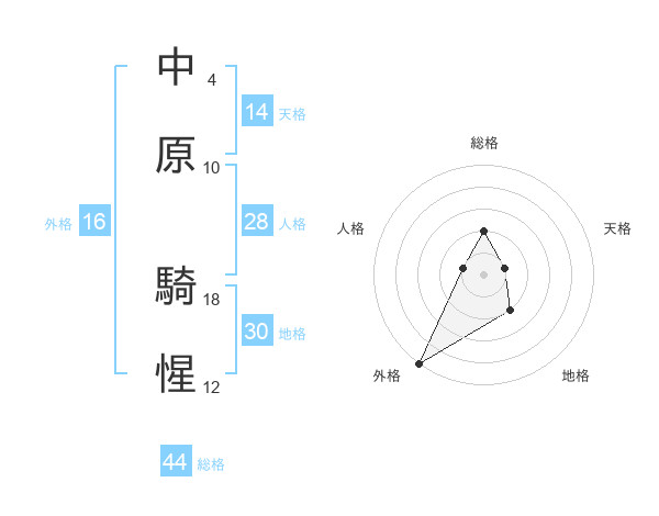 中原 騎惺さんの総格は44画の2点!