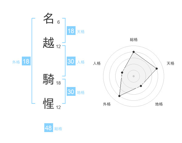 名越 騎惺さんの総格は48画の4点!