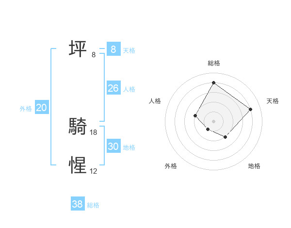 坪 騎惺さんの総格は38画の4点!