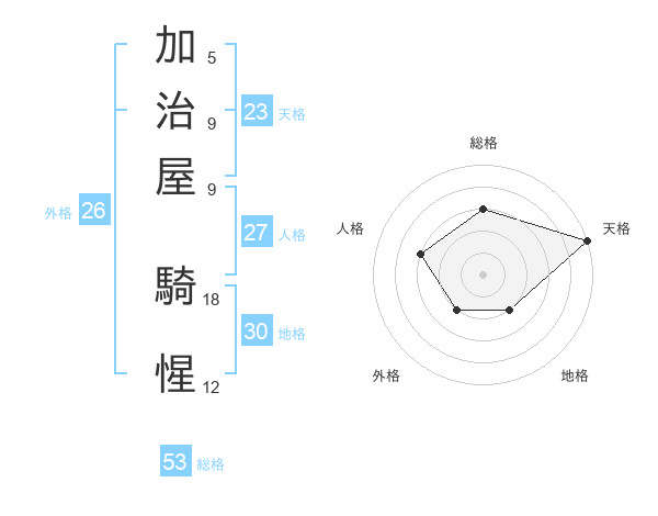 加治屋 騎惺さんの総格は53画の3点!