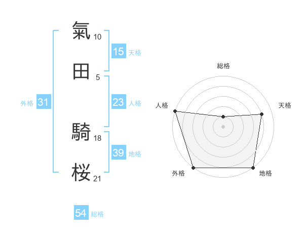氣田 騎桜さんを姓名の画数から五運を鑑定