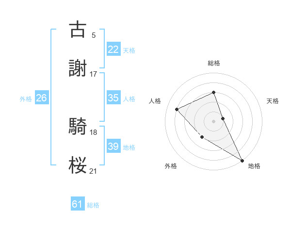 古謝 騎桜さんを姓名の画数から五運を鑑定