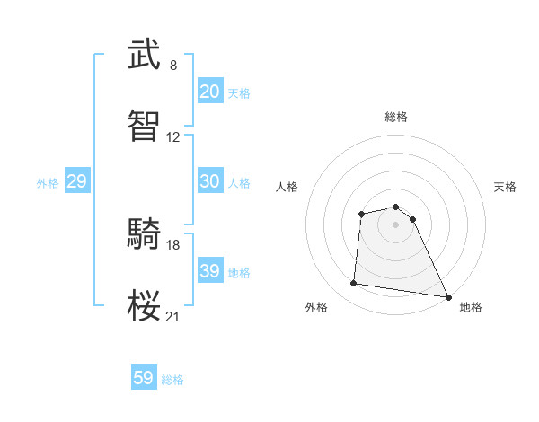 武智 騎桜さんを姓名の画数から五運を鑑定