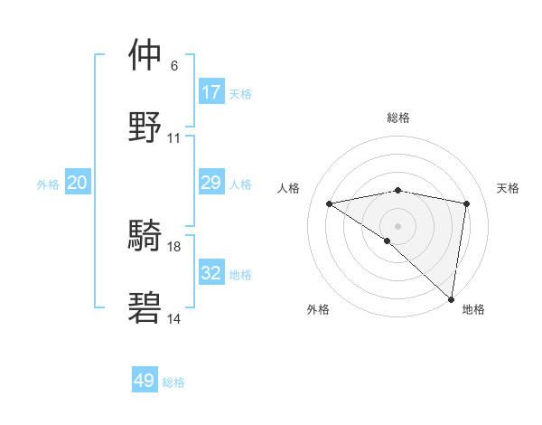 仲野 騎碧さんの総格は49画の2点!