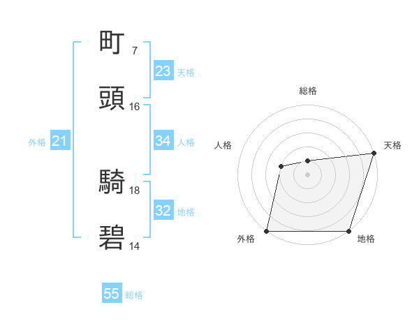 町頭 騎碧さんを姓名の画数から五運を鑑定