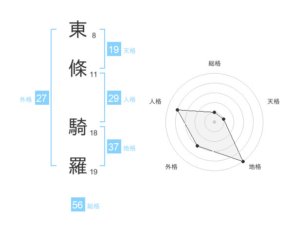東條 騎羅さんの総格は56画の1点!