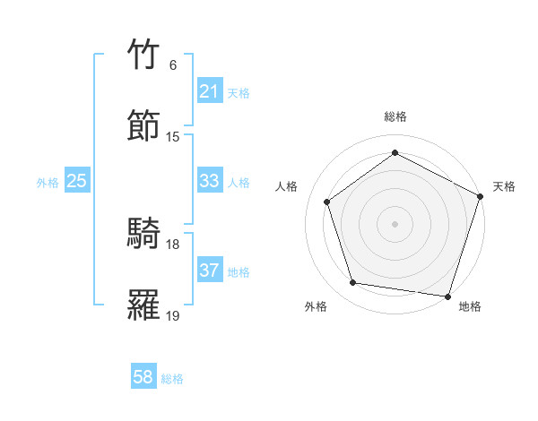 竹節 騎羅さんの総格は58画の4点!