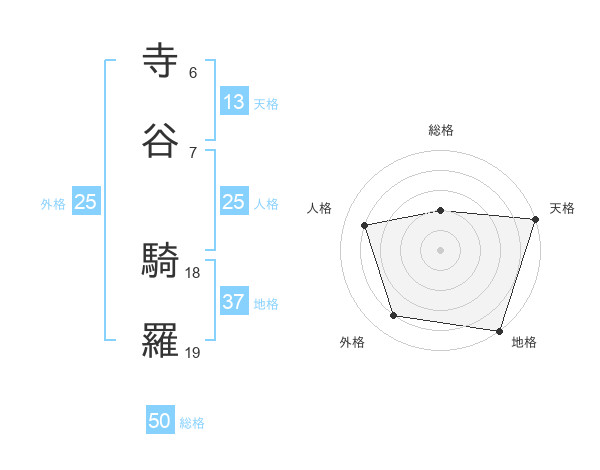 寺谷 騎羅さんの総格は50画の2点!