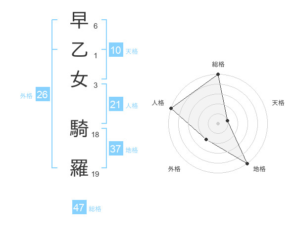 早乙女 騎羅さんを姓名の画数から五運を鑑定
