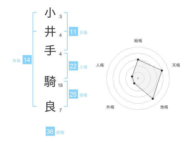 小井手 騎良さんを姓名の画数から五運を鑑定