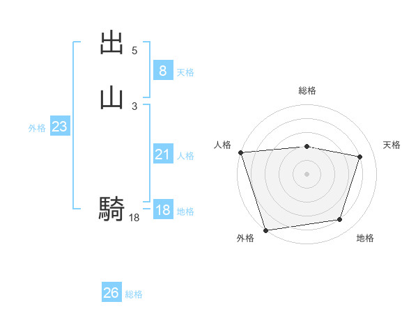 出山 騎さんの総格は26画の2点!