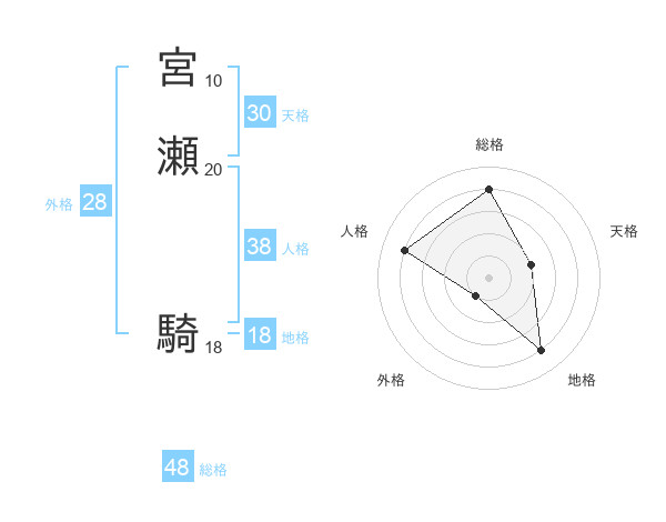 宮瀬 騎さんの総格は48画の4点!